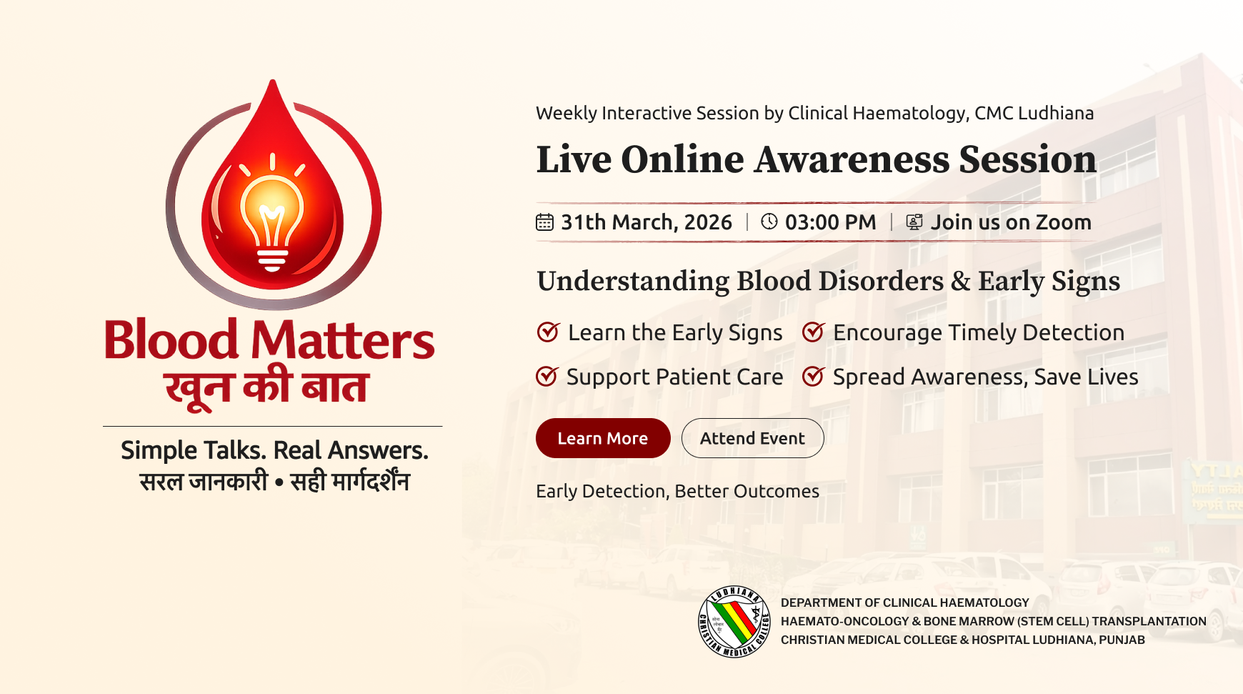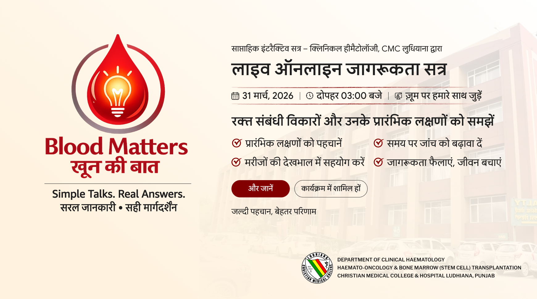 यह कार्यक्रम रक्त से जुड़ी स्वास्थ्य जानकारी को सरल, समझने योग्य और सभी के लिए उपयोगी बनाने के उद्देश्य से तैयार किया गया है।